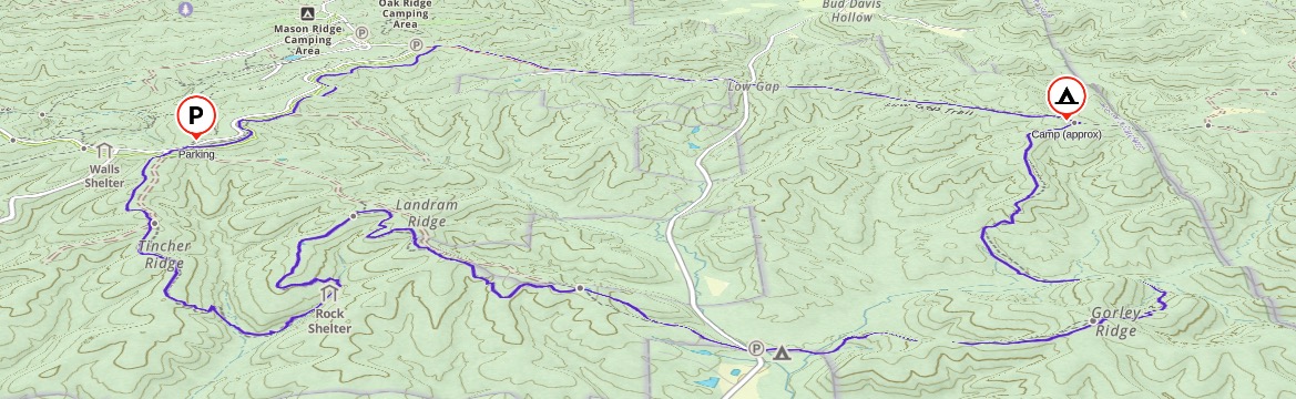 Then drive south about 1.5 mi to the Low Gap Trail parking lot (also the same parking lot for Mason Ridge Trail and Rock Shelter Trail).